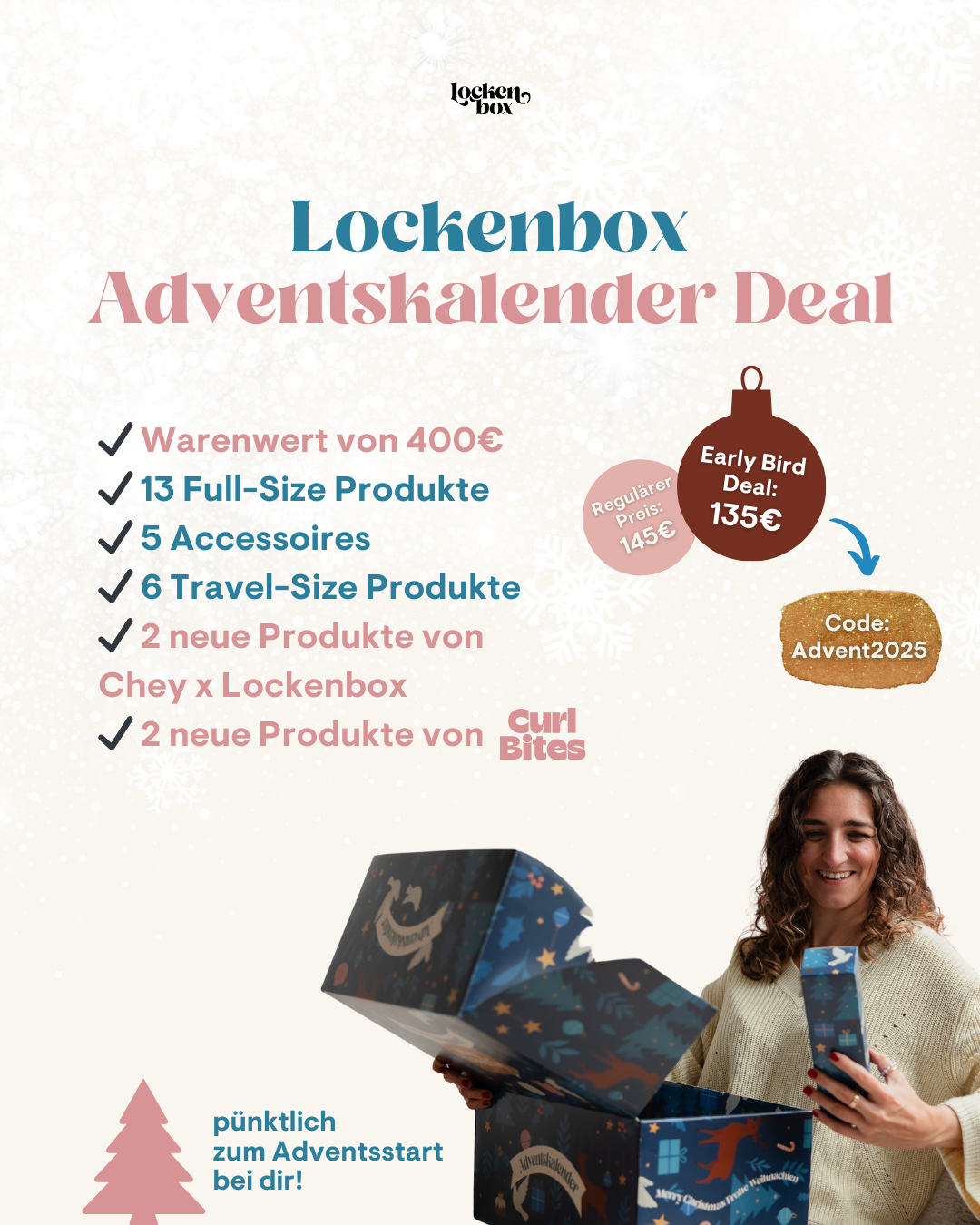 Unser Adventskalender ist für alle Lockentypen ausgelegt - von wellig, lockig bis stark gelockt.
